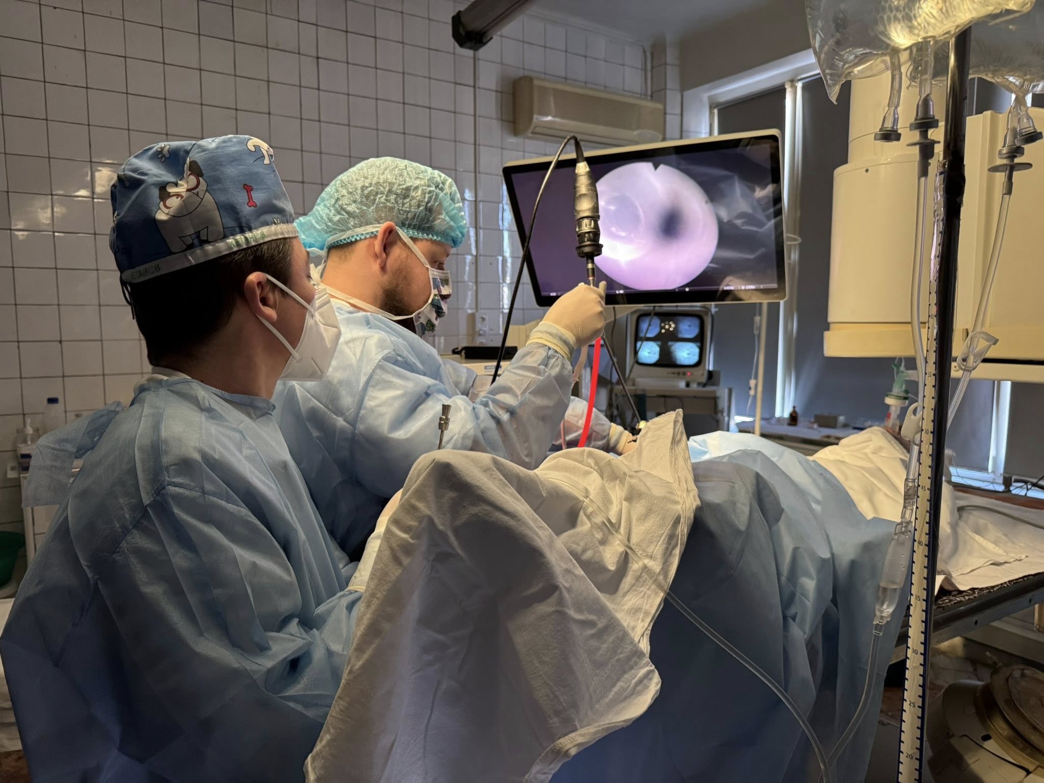 була проведена лазерна фрагментація та видалення фрагментів каменів через статеві шляхи без жодного розрізу.